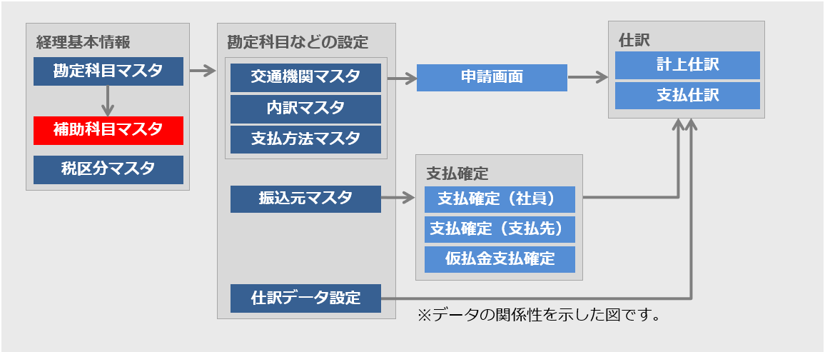 | 補助科目名 | 会計ソフトと連携を行う場合は、会計ソフトで利用している名称を設定してください。 | 文字数上限:20 テンプレート入力値:任意の値 |