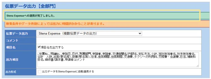 「Stena Expenseへの連携が完了しました」というメッセージが表示されます。