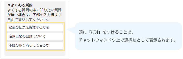 ※選択肢として表示する質問数に上限はありません。使いやすさのため5個以内が推奨です。