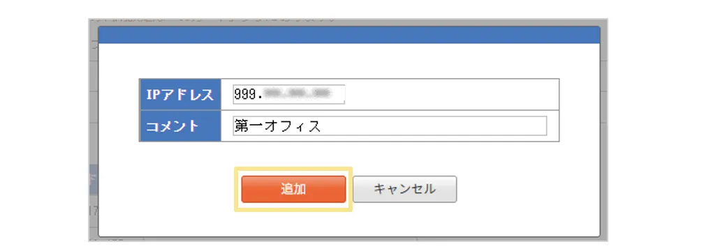 設定画面が開かれます。アクセスを許可するIPアドレスと、必要に応じコメントを入力し、
