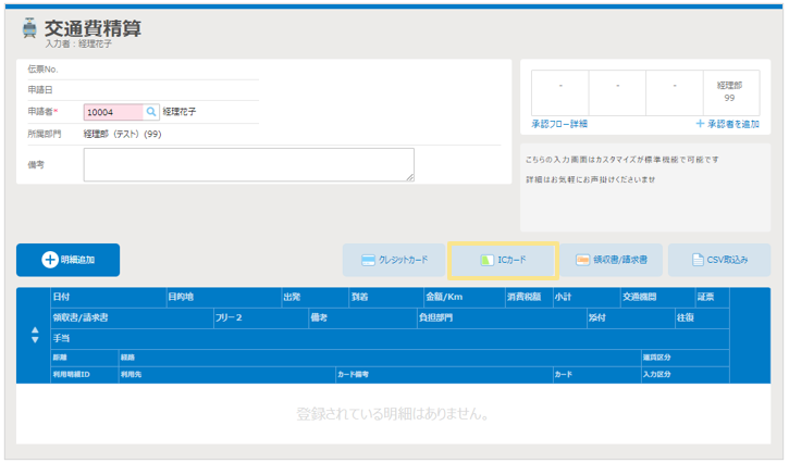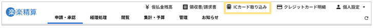ログイン後右上の「ICカード取り込み」または申請画面の「ICカード」ボタンからも、