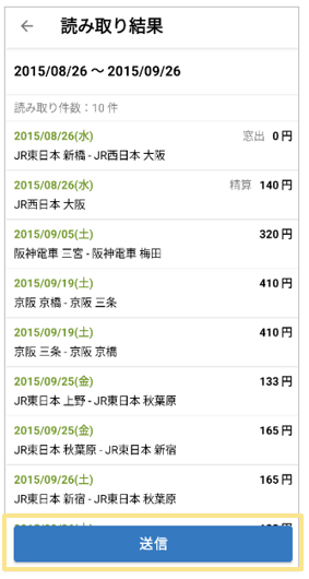 3. 読取結果が表示されるので「送信」ボタンをタップ