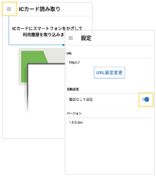 読み取ったICカードの履歴データを送信する前に、確認画面を表示するかを設定できます。