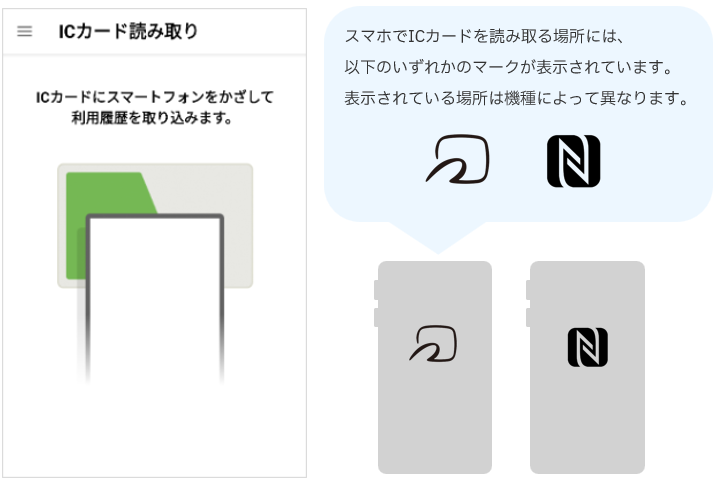 方法はお手持ちの機種の取扱説明書をご確認ください。 - 機種により、NFCの受信感度が異なります。