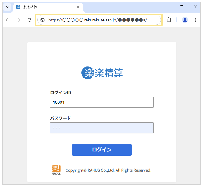 【ログインURL 例】https://rs〇〇〇〇.rakurakuseisan.jp/●●●●●● a /