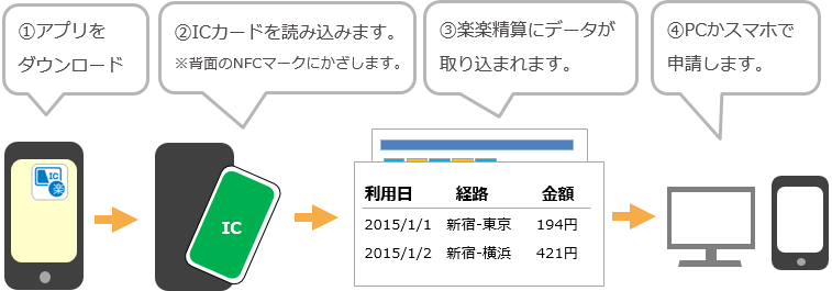 ※本ページではAndroid版「楽楽精算ICリーダー」アプリを利用したICカードの取込方法を