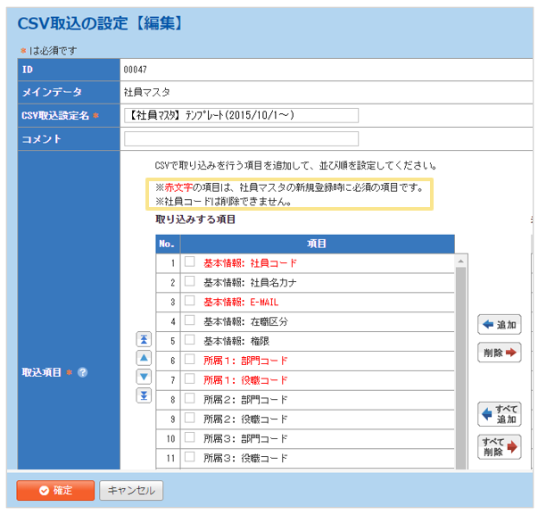 ※追加する際には取込項目の並びと同じ順番で項目を追加