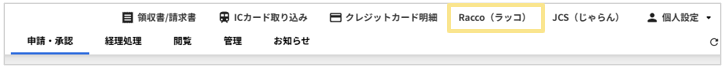 1.右上の「Racco(ラッコ)」をクリック