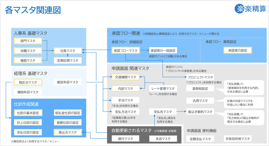 「社員マスタ」がどのマスタと紐づいているかは、以下の「各マスタ関連図」をご参照ください。
