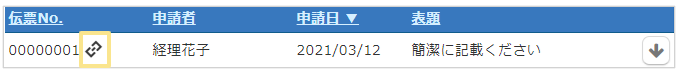 参照している申請/精算伝票がある場合は、伝票No.にマークが表示されます