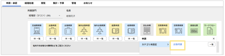 ご希望のお客様は、画面上部の「お問い合わせ」よりお問い合わせください。 - 精算を伴わない稟議書や慶弔申請などの申請を自由に設定できます。