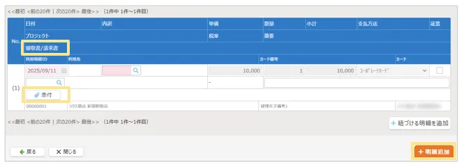 明細入力画面が表示されるので、必要情報を入力して「明細追加」ボタンをクリック