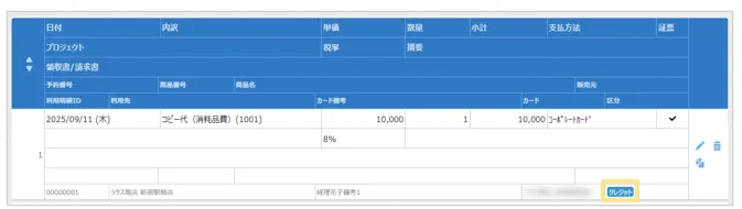 明細に追加されると、「入力区分」に「クレジット」というアイコンが表示されます。
