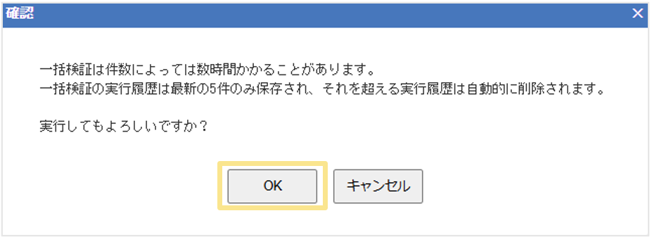 「OK」ボタンをクリックすると、一括検証状況の画面に自動的に遷移します。