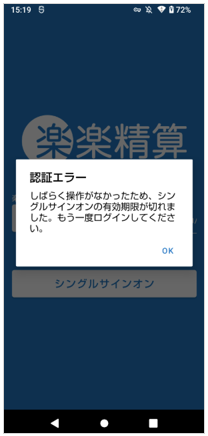 「しばらく操作がなかったため、シングルサインオンの有効期限が切れました。