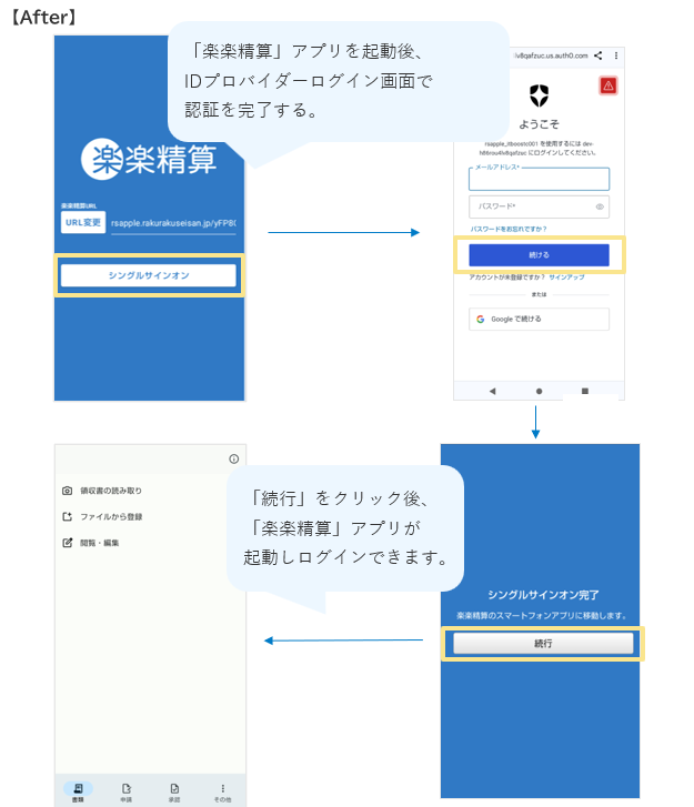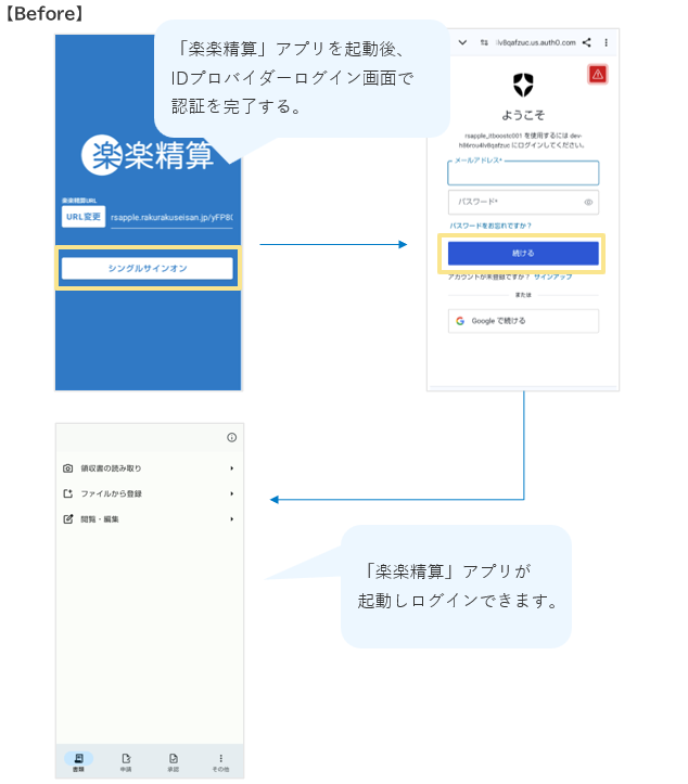 シングルサインオンを設定済みで「楽楽精算」アプリをご利用の場合、