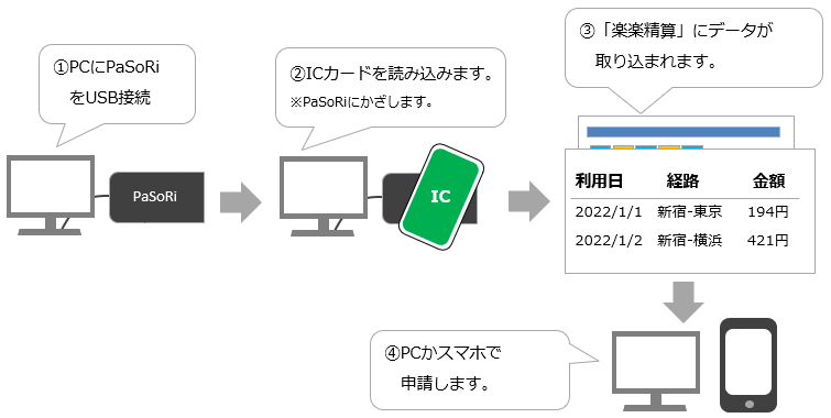 「楽楽精算」のログインIDとICカード情報の紐づけ作業が必要です。
