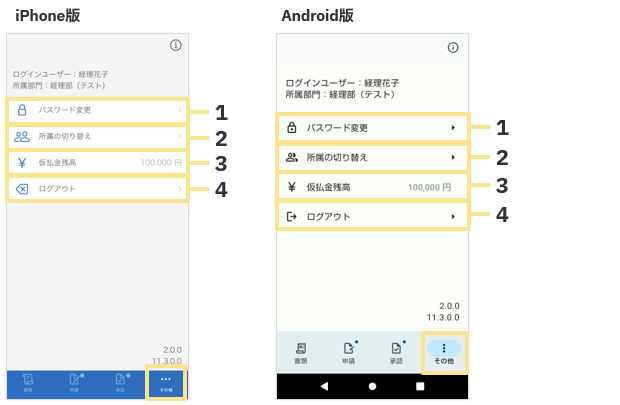 ※以下はスマートフォンブラウザ版 、iPhone/Android版「楽楽精算」アプリともに共通設定です。