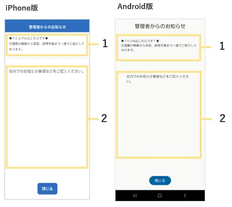 - iPhone/Android版「楽楽精算」アプリでは「プッシュ通知」機能を利用できます。