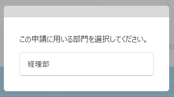 「申請時の所属確認」を「許可する」に設定することで申請画面を開いたタイミングで、申請者が複数部門に所属している際に、申請する「所属部門」を確認するダイアログが表示されます。