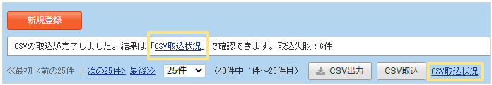 ※CSVの取込が失敗した場合は、「CSV取込状況」から取込の失敗原因を確認できます。