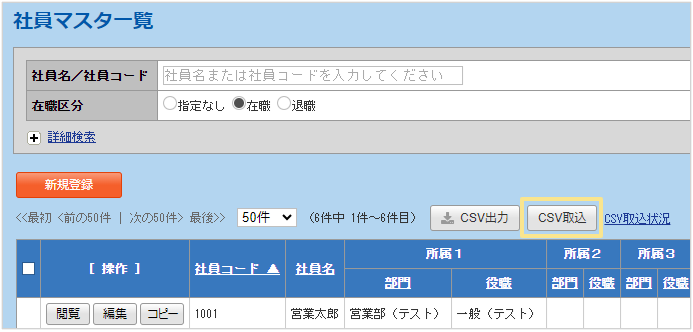 11.取込完了後、「社員マスタ」の一覧が表示されます。