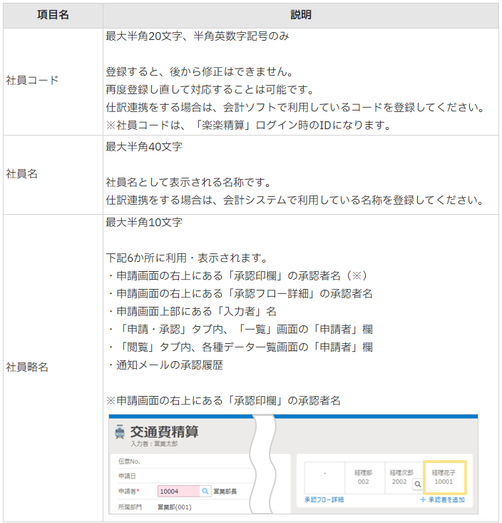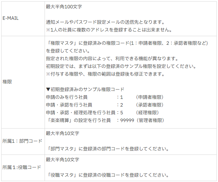 これにより、どの部門の/どの役職の社員かを「楽楽精算」上で判断できます。