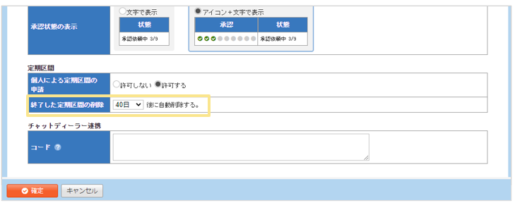 「終了した定期区間の削除」項目で【40日・60日・90日・180日】から選択します。
