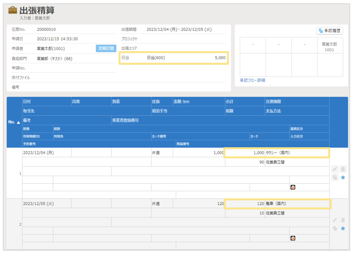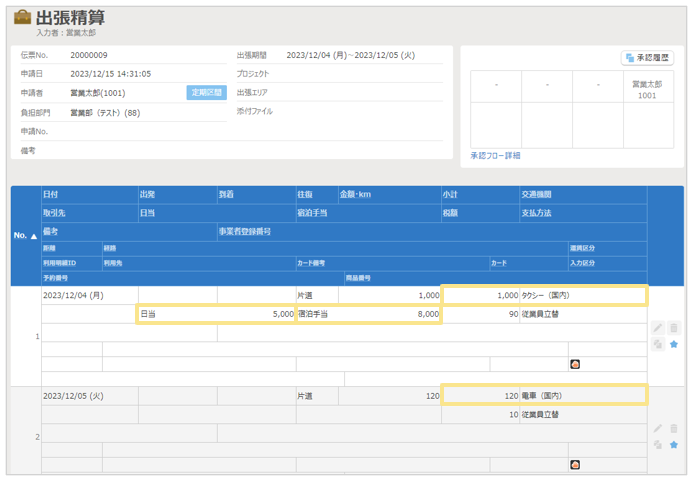 ※ヘッダに配置されている手当の仕訳日は、明細が1つもない場合は「申請日」で