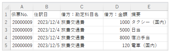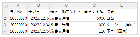 上記申請内容の場合、仕訳は以下のように出力されます。