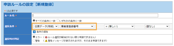 ・計算式の条件として「事業者登録番号」を設定することも可能です。