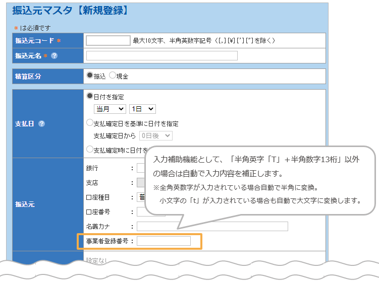 - 「支払先マスタ」適格請求書発行事業者番号 登録可能に