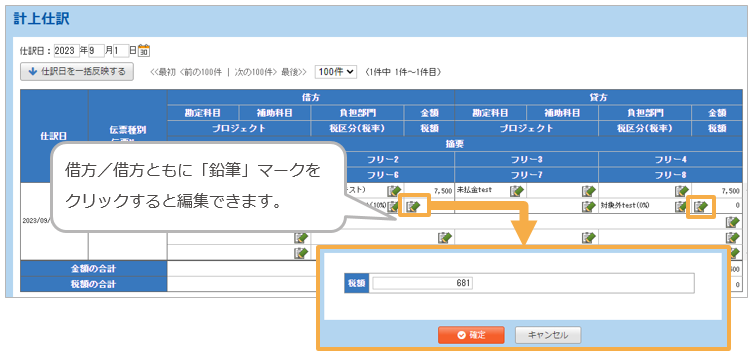 ・税額を編集した場合、編集後の金額が仕訳に反映されます。
