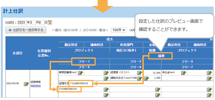 1-2. 仕訳データに「事業者登録番号」を出力できます。