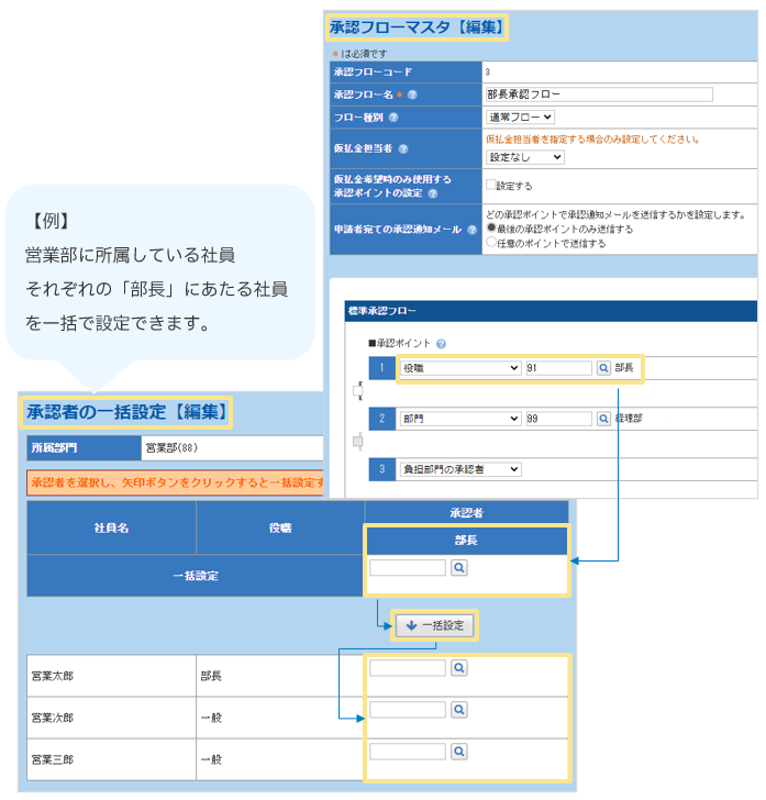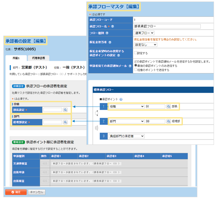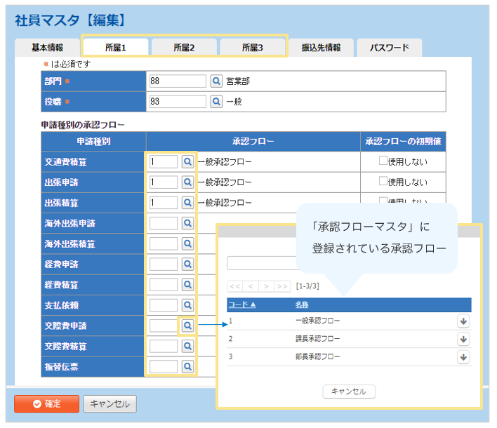 ※「社員マスタ」で該当の承認フローを設定していることが条件です。