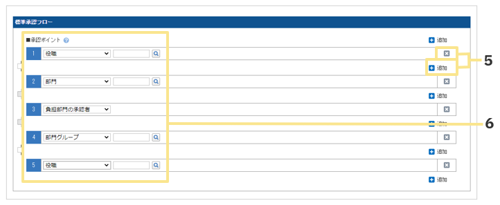 承認ポイントを設定する行を「削除」「追加」できます。最大で10行まで設定できます。