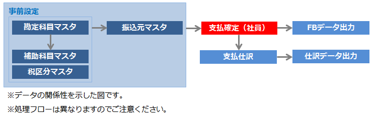 - 「支払依頼」で作成した伝票(取引先への支払の場合)は、「支払確定(支払先)」にて