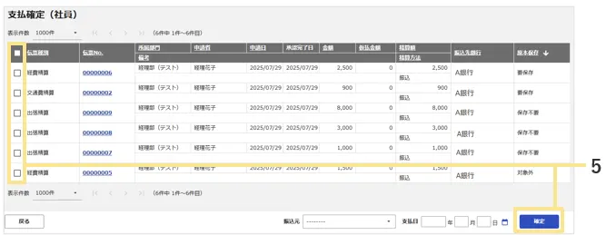 - 「支払確定」を行う伝票にチェック