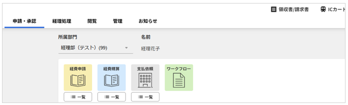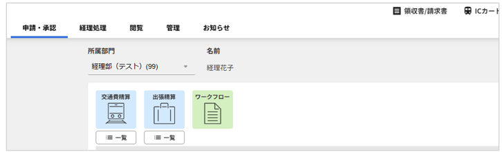 各社様の設定によって「申請・承認」タブの見た目が異なります。