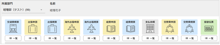 「楽楽精算」では、利用する申請種別以外を非表示にできるため