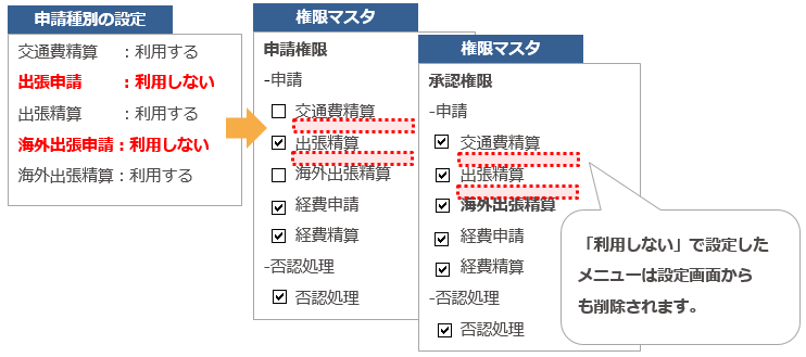 「利用しない」 で設定した申請種別のデータは、 「計上仕訳」 確定以前の処理を行うことが
