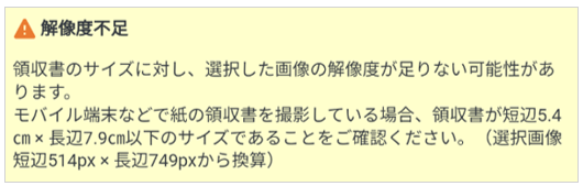 ・200dpi以上確保できるサイズの領収書であることを確認してそのままアップロード