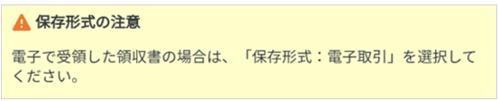 ※保存形式が「電子取引」の場合は、解像度の要件がないため、メッセージは表示されませんが、