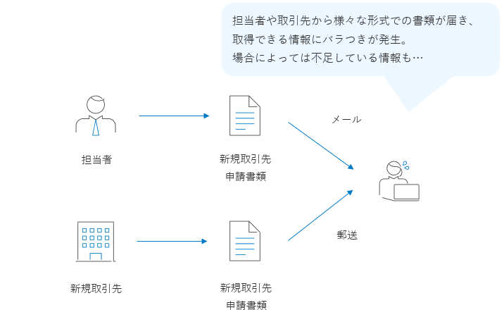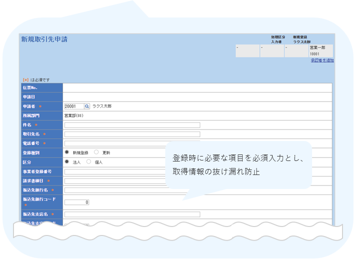 各担当者から取引先の情報の申請を行ってもらいます。