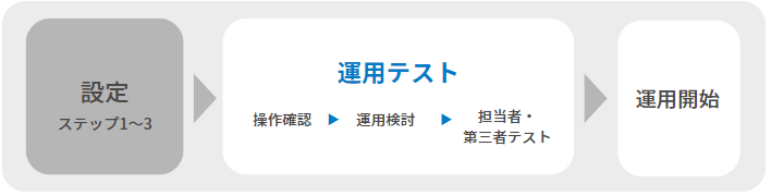 運用テストは「①操作確認 > ②運用検討 > ③担当者・第三者テスト」の3段階で