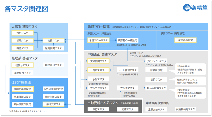 これまでに登録いただいた各種マスタがどのように紐づいているかは、