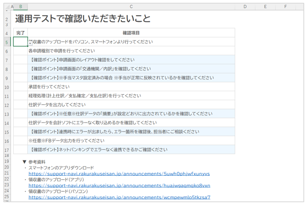 動画内で紹介しております「運用テスト時のチェックリスト」について、