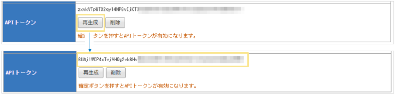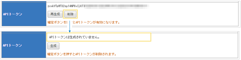 APIトークン欄の「生成」ボタンをクリックし、APIトークンを生成します。
