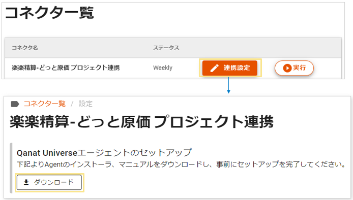 「コネクタ一覧」の「連携設定」からダウンロードできます。