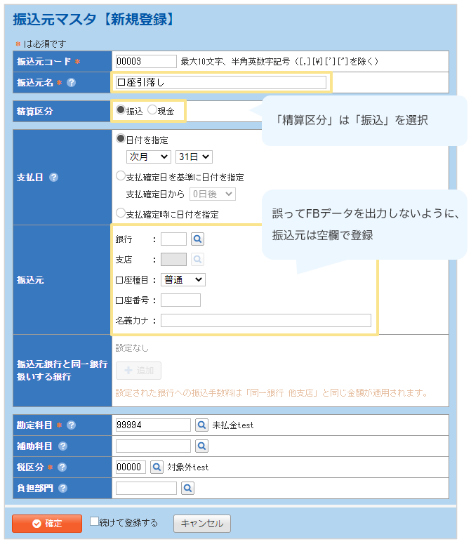「振込元マスタ」の設定